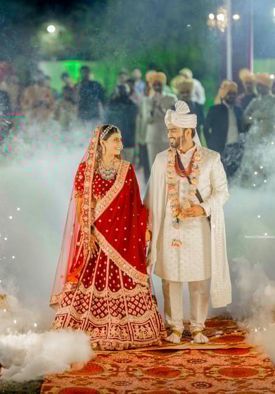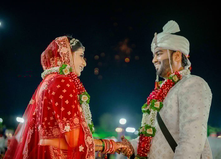 Aayushi and Abhishekh's wedding was a celebration of love and family. Their journey began in college, where they instantly connected over shared interests. After a romantic proposal during a getaway, they decided to blend their traditions for their big day. The festivities started with a colorful mehendi ceremony, filled with laughter and music. On the wedding day, Aayushi looked radiant in her traditional attire, while Abhishekh stood by her side, equally dapper. Surrounded by family and friends, they exchanged heartfelt vows, sealing their commitment to each other. The reception was a lively affair, featuring delicious food, dancing, and touching speeches. As they danced the night away, it was clear that Aayushi and Abhishekh’s love story was just beginning, filled with joy and new adventures together.