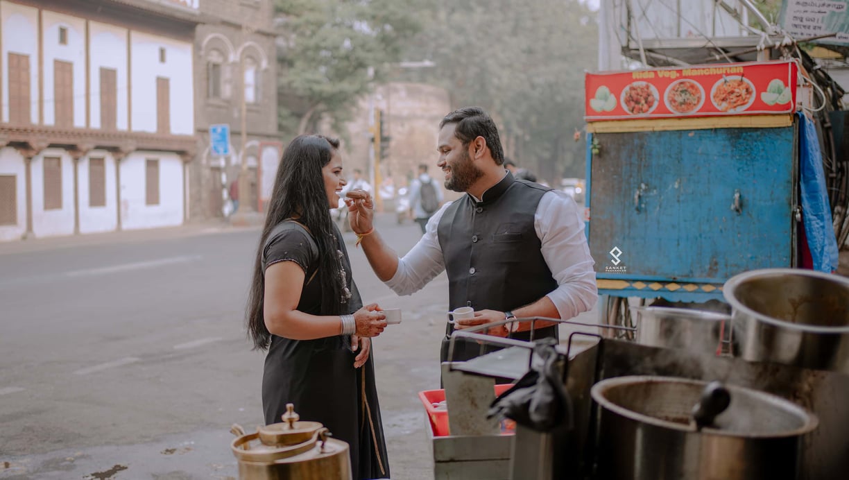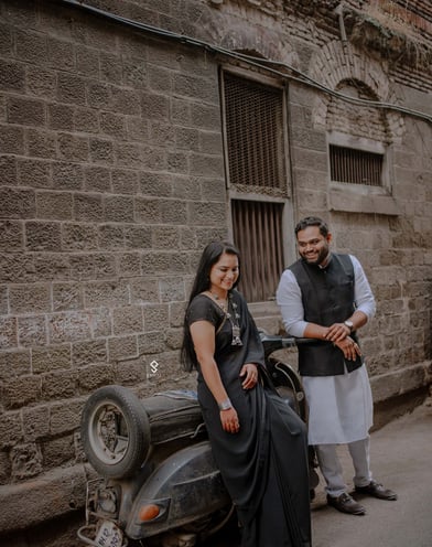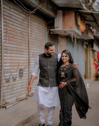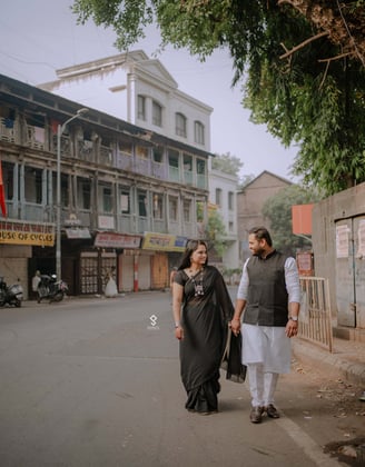 In the bustling heart of Pune, Shubham and Rutuja's pre-wedding journey unfolded like a vibrant tapestry woven with love and joy. They spent their days exploring the city's charming streets, from the historic Shaniwar Wada to the serene banks of the Mula-Mutha River. Their laughter echoed through the lush gardens of Pune's many parks, where they shared candid moments and sweet nothings. Each photoshoot captured their playful spirits—Rutuja twirling in a colorful lehenga while Shubham playfully chased her with a bouquet of roses. Surrounded by the warmth of family and friends, their pre-wedding celebrations blended traditional rituals with contemporary flair, embodying the perfect fusion of their personalities. As they prepared to take the plunge into marriage, their love story blossomed in the vibrant city they cherished, promising a lifetime of adventure and togetherness.