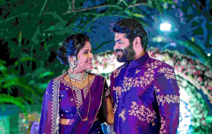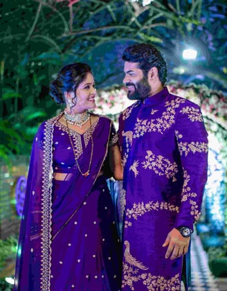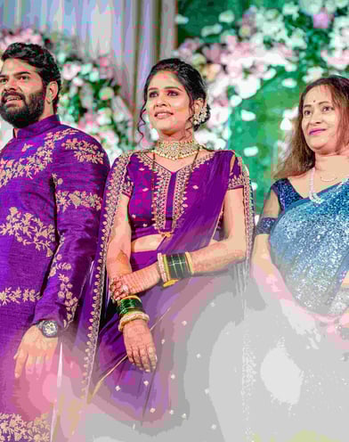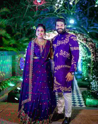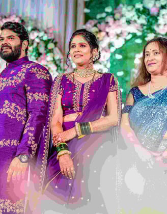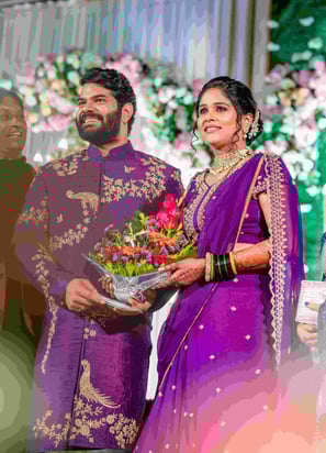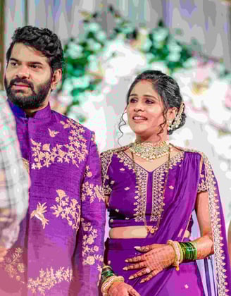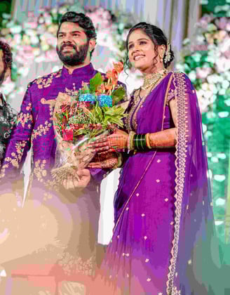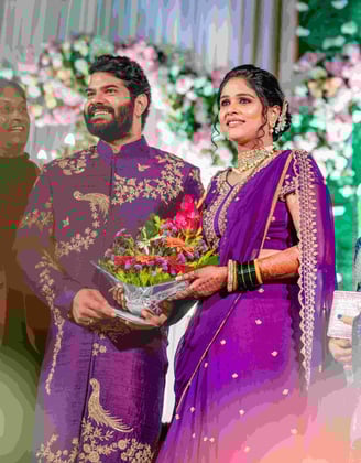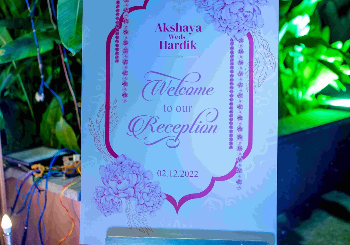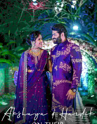Akshaya and Hardik's reception was a stunning culmination of their love story, held in a grand venue adorned with twinkling lights and exquisite floral arrangements. As guests arrived, the atmosphere buzzed with excitement and joy, filled with the sounds of laughter and music. The couple made a breathtaking entrance, radiating happiness in their elegant attire, with Akshaya glowing in her beautifully crafted gown and Hardik looking dapper in his tailored suit. Surrounded by family and friends, they shared heartfelt speeches, celebrating their journey and the love that brought them together. The evening unfolded with delightful performances, dancing, and a sumptuous feast that showcased their favorite dishes. As the night went on, Akshaya and Hardik took a moment to steal away from the festivities, gazing into each other’s eyes and savoring the magic of their special day, surrounded by love and the promise of a beautiful future together.