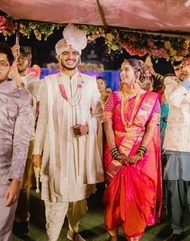 Shubham and Pooja’s wedding was a joyous celebration of love and unity, blending tradition with heartfelt moments. Surrounded by family and friends, they embarked on this special journey, filled with vibrant rituals and meaningful gestures. Their day was a perfect reflection of their personalities—graceful, elegant, and full of warmth. As they exchanged vows and rings, their eyes sparkled with promises of a lifetime together, creating memories that would be cherished forever. Their wedding was not just a union of two hearts, but a celebration of the love and happiness that brought them togethe